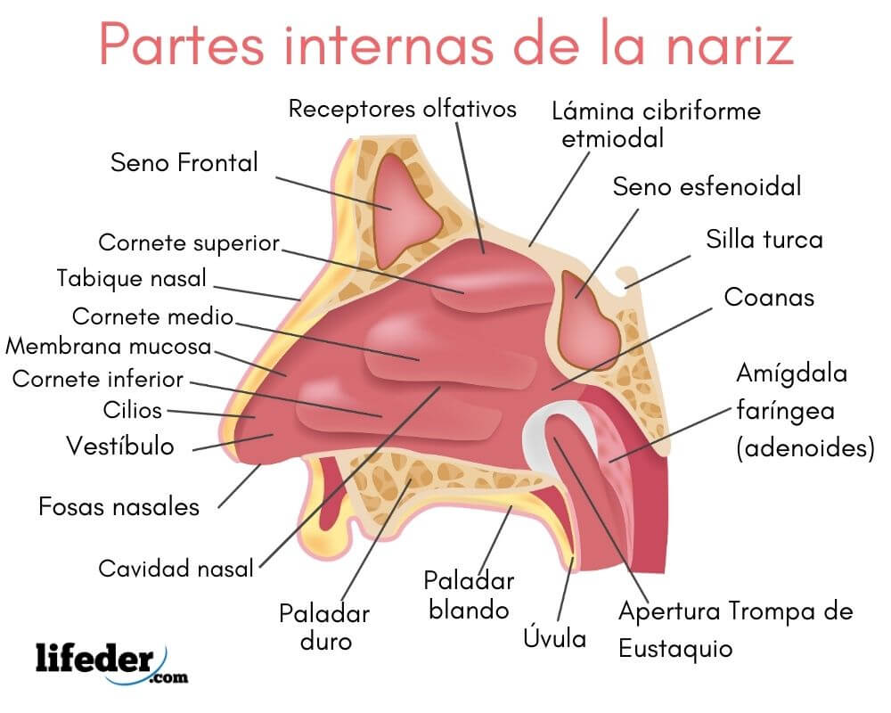 En primer lugar dediquémosle un momento a la nariz, la parte del aparato respiratorio superior que se encarga de contrarrestar el frío y la falta de humedad. El aire a su paso por la nariz pasa un tortuoso recorrido atravesando cornetes y meatos que ponen en íntimo contacto el aire inhalado con la superficie de la mucosa nasal. Con tres objetivos:
